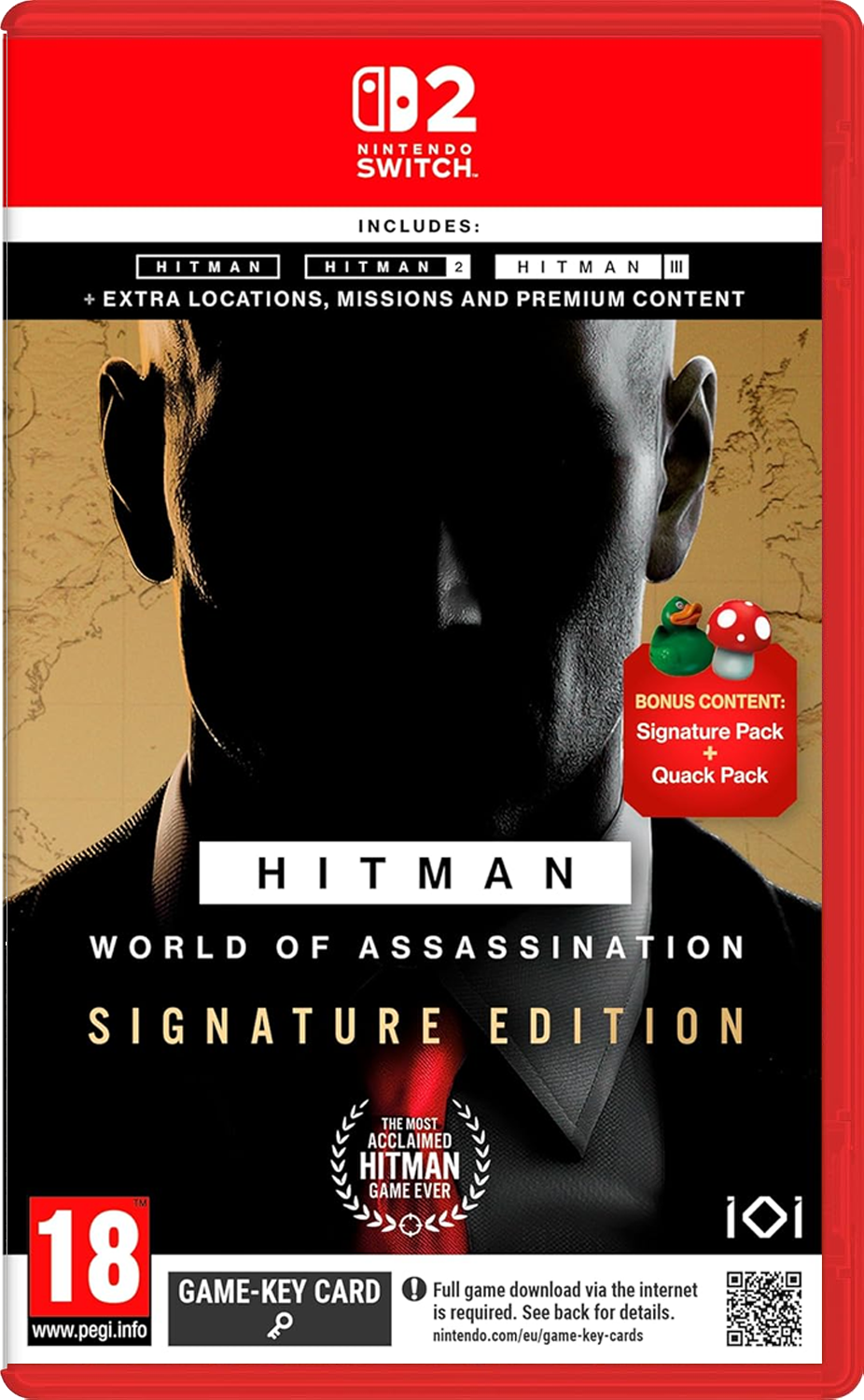 HITMAN World of Assassination - Signature Edition brings together the best of HITMAN, HITMAN 2 and HITMAN 3 including the main campaign, Contracts mode, Escalation, Elusive Target arcades, featured live content, Freelancer game mode plus all HITMAN 2 Expansion Pack & HITMAN 3 Deluxe Pack content.