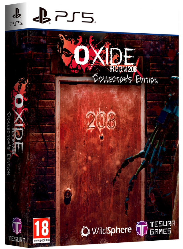 Collector's Edition includes: OXIDE Room 208 game in physical format, OXIDE Room 104 game in voucher code, The Art of OXIDE Room 208, Doc's Acrylic Standee, “Play Me” Case, CD with OST, Making Of and Collector's box.