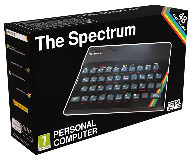 - 48 games built-in, including; Manic Miner, The Hobbit, and Head Over Heels.